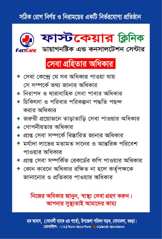 - অধিকার, স্বাস্থ্যসেবা ও আপনার সুস্থতাই আমাদের কাম্য